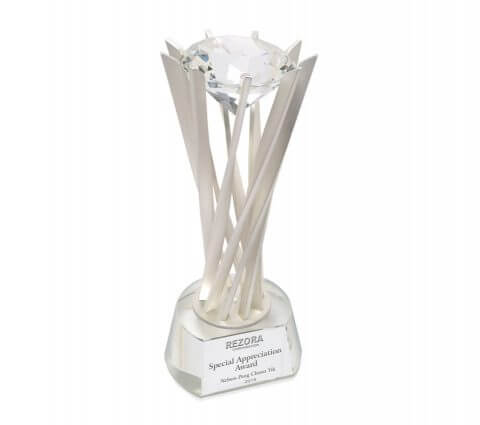 The Senza Radius Diamond on Round Crystal Base is a stunning piece that combines elegance and sophistication. Measuring 26cm in height and 10cm in width, this exquisite trophy is perfect for recognizing achievements and milestones.
