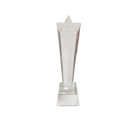 The Star Crystal Trophy is a stunning award designed to recognize excellence and achievement. Measuring 24cm in height and 6.5cm in width, this trophy is the perfect size for any corporate event or celebration.