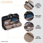 With a three-section design, the interior features a durable fabric lining that protects your items. It includes an RFID blocking pocket for personal data security, a padded tablet slip pocket, and multiple elastic slip pockets for organizing smaller items. The generous main compartment accommodates bulky items, making it perfect for any business setting.