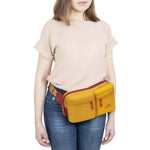 Crafted from high-quality water-repellent material, it ensures your devices stay protected from the elements. The bag features two spacious front zippered compartments for accessories, while the main compartment includes a hidden zipped pocket for your passport and wallet. With an adjustable waist belt, it offers a comfortable fit for all-day wear.