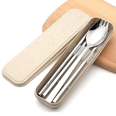 This Eco Friendly Stainless Steel Travel Cutlery Spork and Straw Set is the perfect solution for those looking to reduce their plastic waste while on the go. The set includes a 195mm spork, 185mm chopsticks, 8mm x 185mm straight straw, and a straw brush, all made from durable stainless steel. The set comes in a convenient wheat box, making it easy to take with you wherever you go. Say goodbye to single-use plastic cutlery and straws and make a positive impact on the environment with this eco-friendly set.