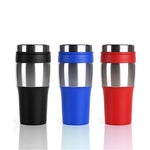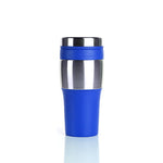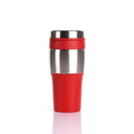 BPA free insulated tumbler which features matching colour PVC grip. It can fit most of the automobile cup holders. Not microwave or dishwasher safe, hand wash only.