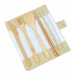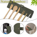 Introducing the Eco-friendly 6 Pieces Bamboo Cutlery Set, a sustainable choice for your dining needs. This portable set includes a knife, spoon, fork, chopsticks, a straight straw, and a straw cleaning brush, all crafted from durable bamboo.
