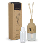 Introducing the NATURA Wooden Reed Diffuser, an elegant addition to any space. This diffuser features a natural beech wood screw-on lid and a frosted glass base, creating a sophisticated look.