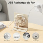 This desk fan is powered by a 4500mAh USB rechargeable battery, making it portable and convenient. Enjoy a long-running time of 4-16 hours, with a full charge achieved in just 3-4 hours, ensuring minimal downtime.