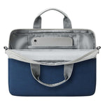 Its slim, compact design minimizes visible pockets, while a front hidden zippered pocket discreetly conceals valuables like mobile phones and wallets. The padded laptop compartment accommodates devices up to 15.6 inches, along with a dedicated section for documents and a pocket for tablets up to 10.1 inches.