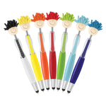 Introducing the Mop Topper Pen, a fun and functional novelty ballpoint pen that is perfect for everyday use. This unique pen features a smiley-faced head with microfibre hair, making it an excellent tool for cleaning screens while you jot down notes.