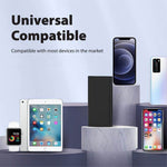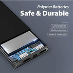 Featuring 2.1A fast charging, this power bank supports dual input and output, ensuring universal compatibility with various devices. It comes with a charging cable and user manual for your convenience.