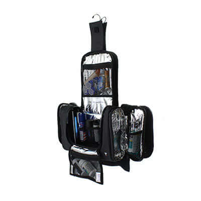 Its wide-open design allows for effortless access to all your toiletries, making travel more convenient than ever. Dimensions: 21cm x 32cm x 8cm. Available in sleek black.