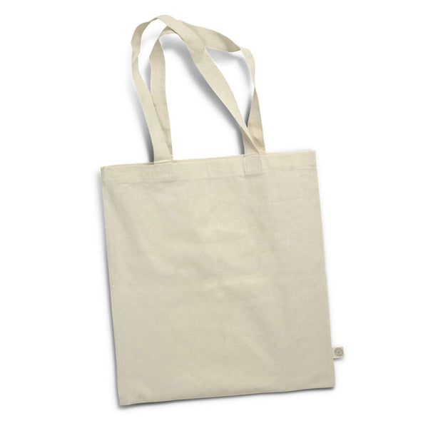 Dimensions are W 382mm x H 420mm, excluding the handle, which measures 595mm. Choose this tote bag to make a positive impact on the environment.