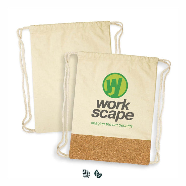 The Oakridge Drawstring Backpack is a stylish and eco-friendly accessory crafted from unbleached 280gsm heavy cotton canvas. Featuring a trendy cork front panel and durable woven cotton drawstrings, this backpack combines functionality with modern design.