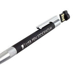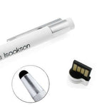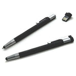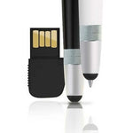 Three in one pen includes a USB stick. Tactile touch silicone stylus combined with a retractable ballpoint tip (twist system) and a USB stick hidden in the pen. Encapsulated flash memory, shock and dust resistant alloy casing. The pen has a twist system with no cap. High grade stylus compatible with all touch screens.