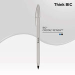 Introducing the BIC Cristal Re New Metal Pen, a premium writing instrument designed for sustainability and style. This refillable ball pen is available in blue or black ink, ensuring you have the perfect colour for any occasion.