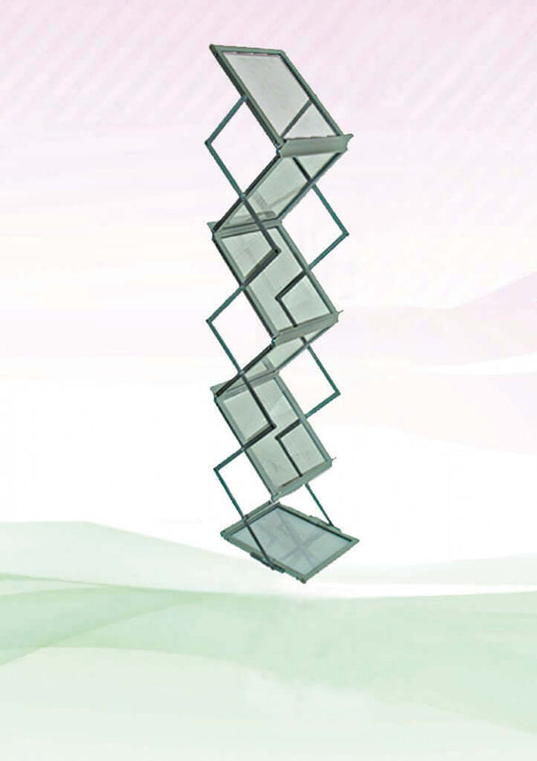 This stand features a collapsible design, making it both stylish and easy to set up. It can hold up to 6 separate brochures on both the front and back, maximizing visibility.