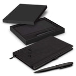 Experience elegance with the Onyx Writing Set, a luxurious black writing ensemble perfect for any occasion. This set features a medium-sized notebook with a thermo PU hard cover, offering durability and style.