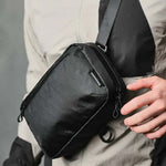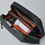 Transforming into a hands-free sling bag, it features a removable crossbody strap for convenience. Made from weatherproof and abrasion-resistant X-Pac VX21 fabric, it includes an accordion-style organization with 12 thoughtfully designed pockets across three compartments. The case stands on its own and has a front quick-access compartment with cable pass-through, ensuring easy access to your tech essentials.