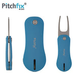 The Pitchfix Hybrid 2.0 Golf Divot Tool with Ball Marker and Pencil Sharpener is an essential accessory for every golfer. Crafted from two aluminum sheets, this lightweight switchblade tool features soft touch handles, ensuring both durability and comfort during use.