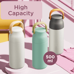With a capacity of 500ml (17oz), it’s ideal for both daily use and outdoor adventures. The flask is lightweight at just 330g and comes with a convenient handle for easy carrying. Enjoy your favorite drinks on the go with this stylish and functional vacuum flask.