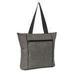 Crafted from durable poly-canvas with a trendy heather finish, this tote features a zippered front pocket and a secure zippered top closure. Long woven carry handles ensure comfortable shoulder wear.