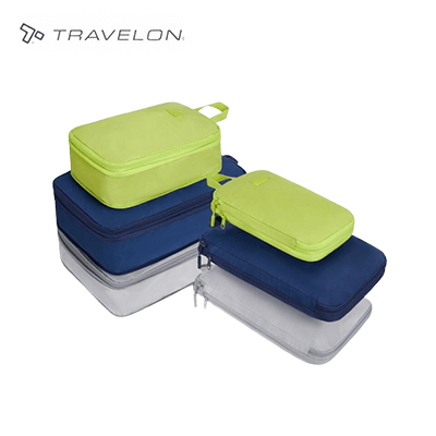 Travelon Set of 3 Compression Packing Cubes revolutionizes your packing experience. The power of compression cubes means never leaving behind items due to lack of space. These highly durable cubes are crafted with strong fabric, reinforced stitching, and effortless-glide zippers, allowing you to pack bulky sweaters and jackets with ease.