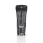 Made of double-wall acrylic, this tumbler is durable and perfect for everyday use. It comes packaged in an individual polybag, making it easy to gift or store. Choose from two stylish colors - black or blue - to suit your personal style. With dimensions of 22cm (H) x 7cm (D) and a capacity of 500ml, it's the perfect size for your daily hydration needs.