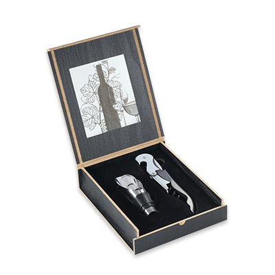 Crafted from durable metal and finished in a sleek black color, this set is both stylish and functional. With dimensions of 13.5cm x 11.5cm x 5cm, it fits perfectly in any kitchen or bar. Packaged in a beautiful wooden gift box, it makes an ideal gift for corporate events or special occasions.