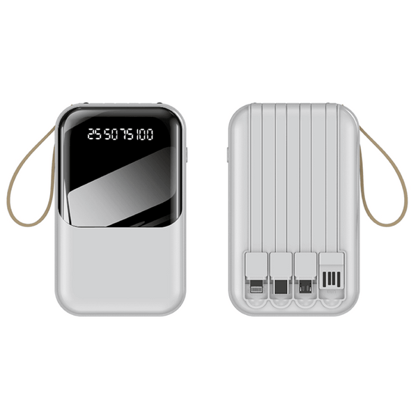 Introducing the 10000mAh Powerbank with 4 Detachable Cable, your ultimate charging companion. This innovative powerbank combines functionality and style, featuring four detachable cables that cater to all your devices. With a robust 10000mAh capacity, it ensures you stay powered up on the go.