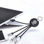 Introducing the 3 in 1 Fast Charging Cable (Round), designed for ultimate convenience and efficiency. This versatile cable features an LED logo and supports fast charging with a speed of up to 2.1A.