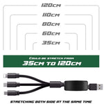 The 3-in-1 Retractable Multicable is the ultimate solution for charging multiple devices simultaneously. With Micro, Lightning, and USB-C outputs, this versatile cable allows you to connect three devices at once, making it perfect for on-the-go use.