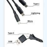 With a 3.0A fast charge input, this cable powers up your devices in no time. The USB-A and USB-C outputs ensure versatile compatibility, while the micro, type-C, and lightning connectors cover all your charging needs.