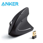 The Anker 2.4G Wireless Vertical Ergonomic Optical Mouse is designed with a scientific ergonomic approach, promoting a healthy neutral 'handshake' wrist and arm position. This design facilitates smoother movement and reduces overall strain during extended use.