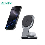 The Aukey LC-MC211 MagFusion 2-in-1 Foldable Wireless Charging Station is a compact and portable solution for your charging needs. Its unique dual-layer sticky note form factor makes it easy to carry and versatile for various settings.