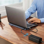Introducing the Baseus 12 in 1 Laptop USB-C Hub, the ultimate solution for all your connectivity needs. With just one dock, you can easily connect all your peripherals to DP, HDMI, USB-C, USB-A, WAN ports, and SD/TF card reader, making multitasking a breeze.