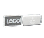 This 3D Crystal Metal Swivel USB flash drive is a unique and eye-catching USB drive. It features a crystal glass body with a 3D engraved logo, as well as an additional imprint area on the metal swivel cap. When plugged in, the 3D logo can be highlighted with a colored LED, making it impossible to miss. The drive comes in a sleek silver color and has dimensions of 65mm (length) x 15mm (width) x 10mm (thickness). AbrandZ is a corporate gifts supplier in Singapore, offering a wide range of customizable products.