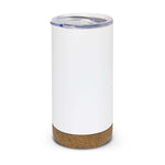 The powder-coated finish, complemented by trendy cork detailing, adds a touch of elegance. Its soft non-slip base ensures stability, while the secure push-on lid with a sliding closure prevents spills.