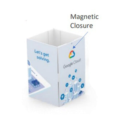Measuring 57mm x 55mm x 87mm, this compact pen pot offers ample space for all your writing essentials. Its sturdy construction, featuring printed paper cardboard and magnets, ensures longevity and reliability.