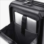 Featuring an innovative front access opening, this luggage includes dedicated device slots for easy organisation. The ergonomic infinity pulling system allows for height adjustment, making it comfortable to carry. With a silent 8-wheel Hinomoto system and an anti-theft security zipper, your belongings are safe and secure.