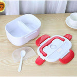 Designed with two separate compartments for rice and vegetables, it also features a handy compartment on the lid for your spoon. Its compact size and lift handles make it easy to carry, while the safety clip ensures secure closure. Enjoy effortless meal prep and cleanup with this sleek, modern lunch box.