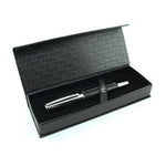 The Ferre Class Roller Pen is a sophisticated writing instrument that exudes elegance and style. This black roller pen features a luxurious beige leather wrap, adding a touch of sophistication to its design. It comes in a sleek gift box, making it the perfect present for any occasion. AbrandZ, a trusted corporate gifts supplier in Singapore, offers this high-quality pen for those who appreciate fine craftsmanship and attention to detail. With its smooth writing experience and exquisite design, the Ferre Class Roller Pen is a must-have for anyone who values both functionality and aesthetics in their writing tools.