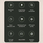 With a 10mm speaker and a sensitivity of 105dB, enjoy rich audio quality. The earbuds offer 6-7 hours of music playback and 5-6 hours of call time, while the IPX5 waterproof rating makes them perfect for workouts.