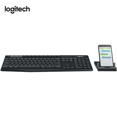 Logitech K375S Multi-Device Wireless Keyboard and Stand Combo is designed for seamless multitasking across various devices. This full-size keyboard allows users to type on their computer and switch effortlessly to their phone or tablet with the touch of an Easy-Switch button.