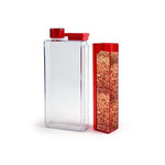 With dimensions of 118mm (L) x 30mm (W) x 198mm (H), it is compact yet functional. The snack container slides back into place effortlessly, ensuring ease of use. Constructed from durable AS material, this bottle is available in three attractive colors: Black, Blue, and Red, catering to various personal styles.