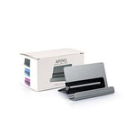Measuring 5.3cm x 9.2cm, this stand is compact yet functional. Crafted from durable aluminium, it boasts a sleek dark grey finish that complements any desktop environment. Additionally, it can double as a business card holder, making it a versatile addition to your office supplies.