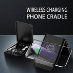 The Portable Cable Box with Wireless Charger is the ultimate travel companion, combining functionality and convenience in one sleek design. This multi-purpose device features six types of cables, including a USB C to USB C cable that supports PD and fast charging.