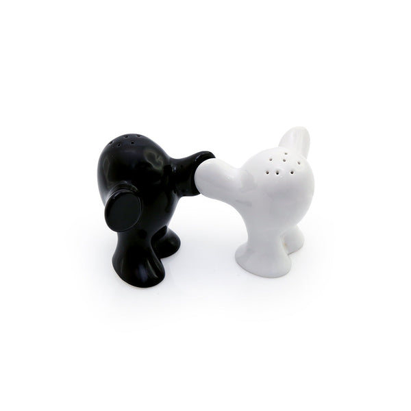 Crafted from high-quality ceramic, the set features a sleek black design accented with white, making it a perfect fit for any table setting. Each shaker measures 7.6cm in height, 8cm in length, and 5cm in width, ensuring they are both practical and aesthetically pleasing.