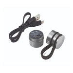 Troika Eco Run Light is a versatile and eco-friendly product that serves as a torch, sports light, and safety light. It features a strong magnet for fastening, a white LED light, and 3 light functions including 2 lighting strengths and blinking lights. This product is rechargeable via USB, making it environmentally friendly. It is equipped with a lithium polymer battery and has overcharge and deep discharge protection. The package includes a charging cable for convenience. The dimensions of this product are 3.5cm x 2.54cm x 2.54cm and it comes in a sleek silver color with black accents. Made with aluminium and silicone, this product is durable and reliable.
