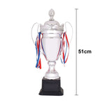 The gold trophy stands at 56cm, the silver at 51cm, and the bronze at 43.5cm, making them ideal for any award ceremony. Each trophy is thoughtfully packaged in a stylish box, ensuring they arrive in pristine condition. Elevate your awards presentation with this impressive Trophy Set from AbrandZ.