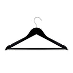 With its easy curves and flat arms, this hanger is designed to elegantly showcase your apparel. The integrated wooden bar is perfect for hanging trousers or skirts, while shoulder notches securely hold clothing items with straps or loops.