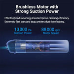 Equipped with a brushless motor that reaches up to 88,000 revolutions per minute, it delivers impressive suction power of up to 13,000 Pa. With a working time of up to 30 minutes, this vacuum ensures efficient cleaning.